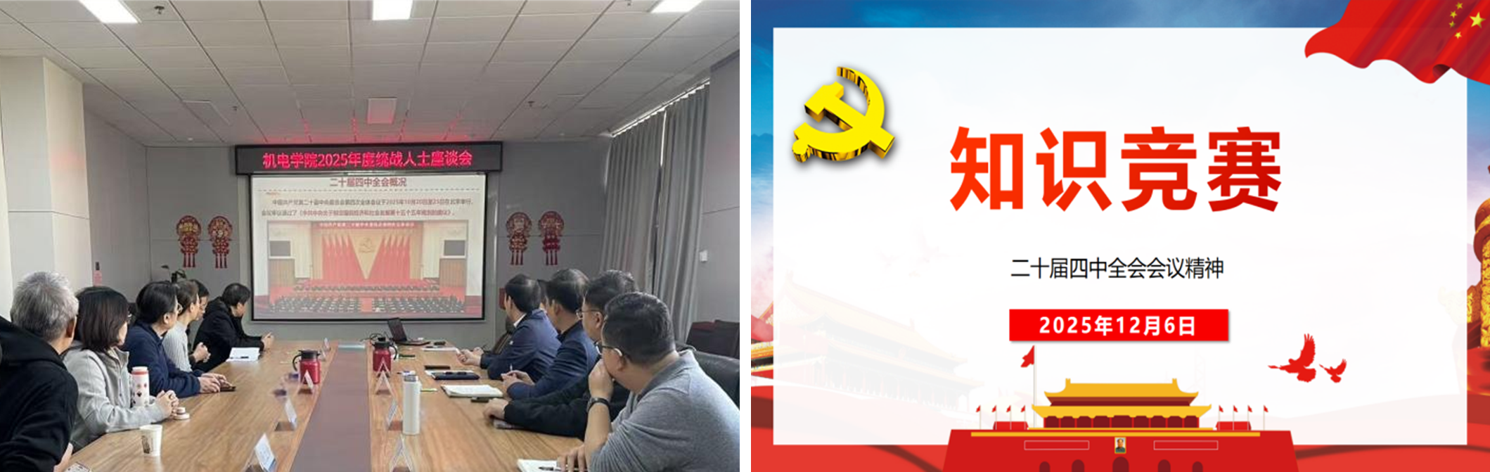 12月6日,机电学院党委举办 “凝心聚力 共谋发展” 统战人士交流活动。学院领导班子成员、党委委员与各民主党派、无党派人士、党外高知代表等齐聚一堂,凝心聚力,共谋发展。座谈会由党委书记魏旺强主持。